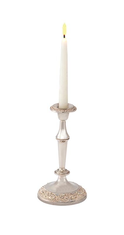 Our 6-inch tall silver candlestick is one of a variety of rental table accessories available for your wedding reception or banquet.