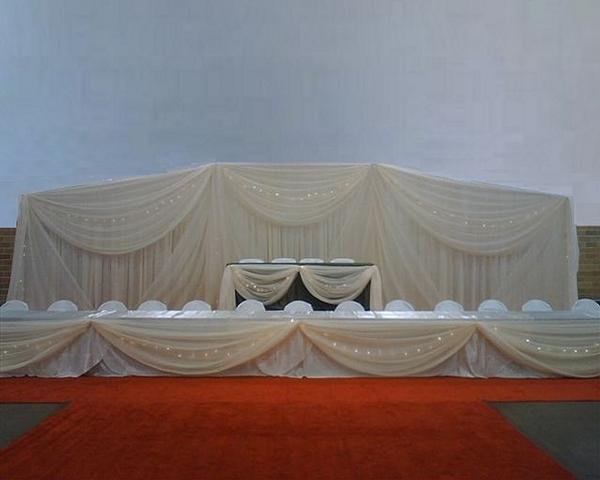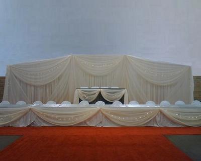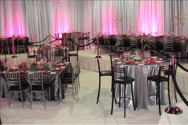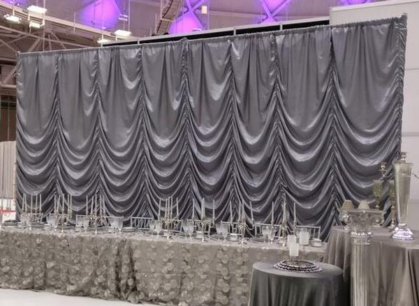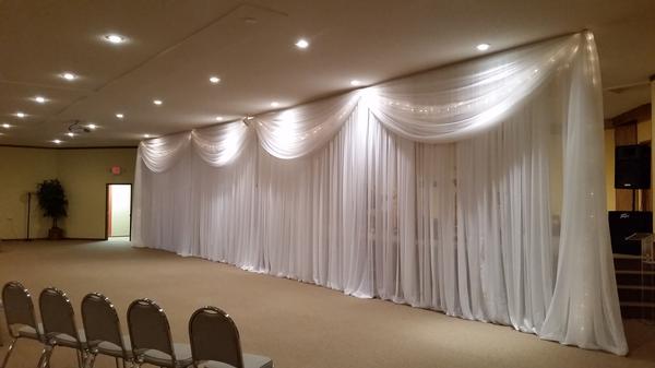 Our Backdrops and Wall Coverings are constructed with a self-supported pipe and drape system, creating a beautiful freestanding backdrop. Backdrops can highlight event focal points such as a ceremony altar, head table, or grand entrance creating a custom look unique to your event. Wall Coverings (whether you are looking to cover 10’ or the entire perimeter of a large venue) creates a fresh timeless look. If you are looking for a custom color or fabric, Ultimate Events has a skilled seamstress on staff to help create your vision.