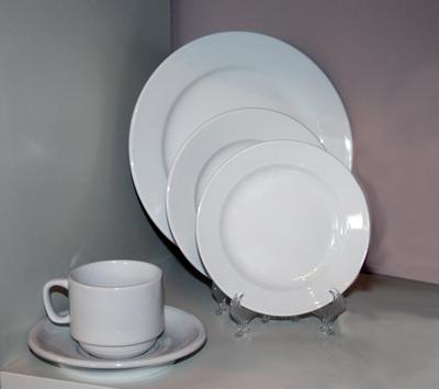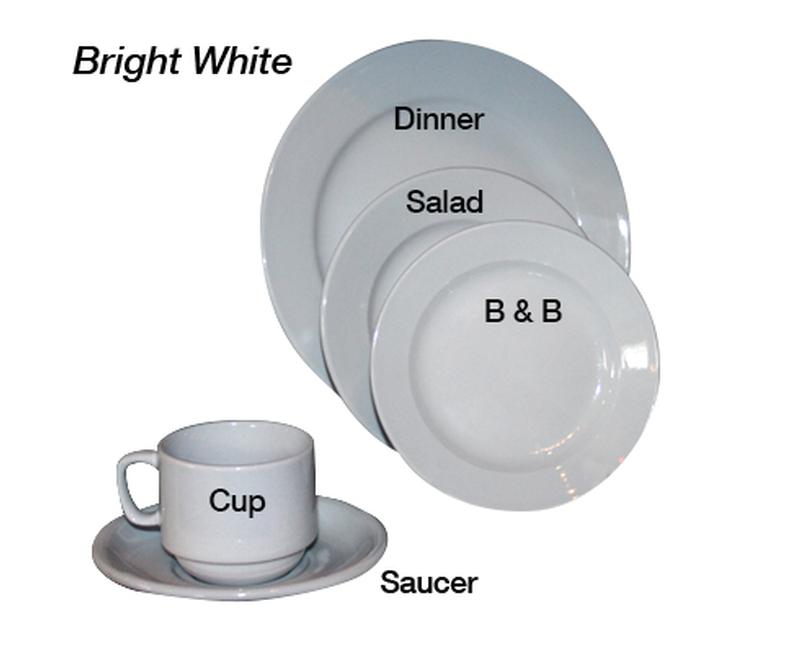 Bright White is a strong traditional rental table china place setting choice for your wedding reception or banquet.