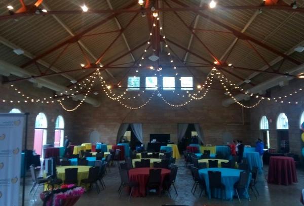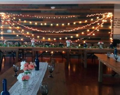 Café lighting is a trending light source for events! Café lighting is a great way to add some overhead lighting in a ballroom, tent, or to your outdoor space (think patios and arbors!). Get a quote started today by adding this item to your shopping cart or calling us directly.