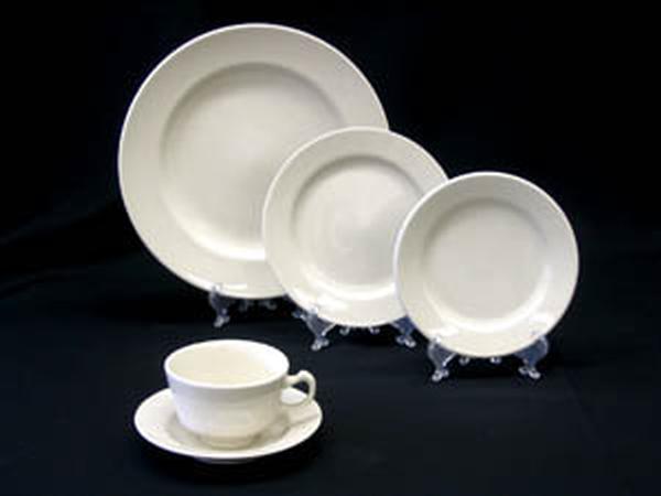 The Durathin design is a cream color china with a classical style makes an excellent choice for the rental table china place setting for your wedding reception or banquet.