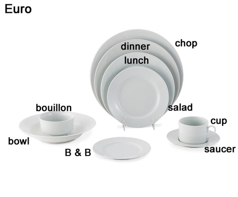 The Euro china design is a classic and elegant white design with a wide rim that makes for an excellent choice of rental table china place setting for your wedding reception or banquet.