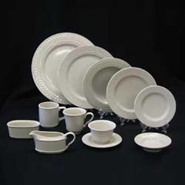 The Gothic design is a cream china with a classical style makes an excellent choice for the rental table china place setting for your wedding reception or banquet.