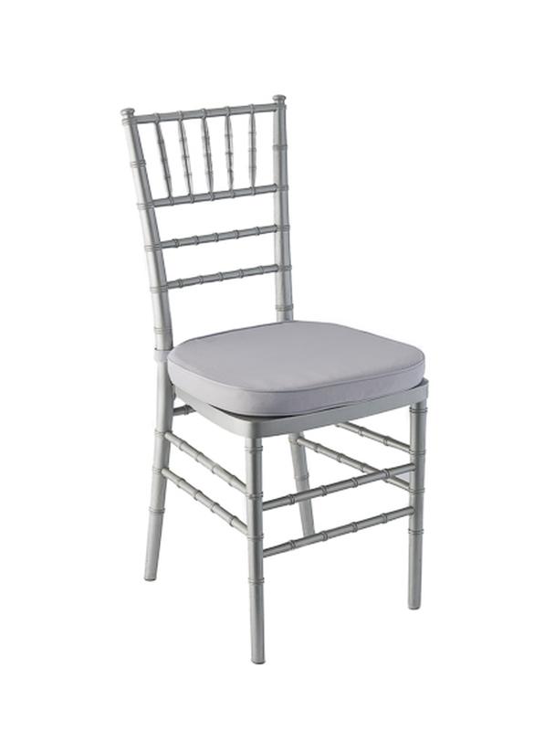 A silver chiavari ballroom chair is among our wide and deep variety of rental chair seating that makes an ideal choice for your party, wedding reception, banquet or special event.