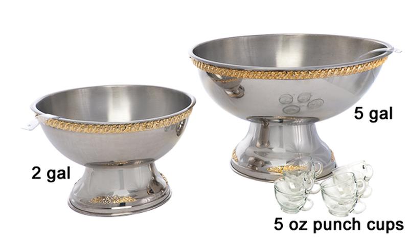 Stainless Steel Gold Trim Punch Bowl