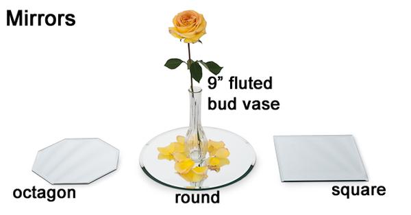 The table mirror styles we offer for rent include octagon, round and square mirrors that can be beveled.
