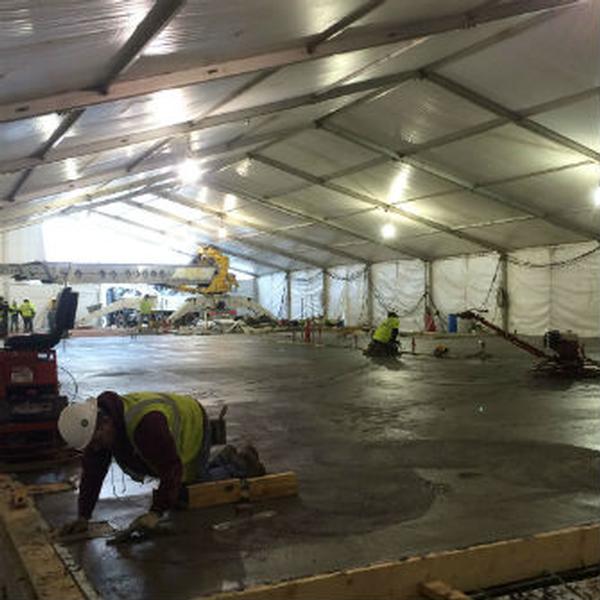 Ultimate Events can provide semi-permanent, structure-style tents that can span widths of 20' up to 98' and and go to lengths of 200' and beyond. These structures are engineered and are the most durable tents in our industry and can be heated. Contact an Ultimate Events specialist to discuss your next construction project and for pricing.